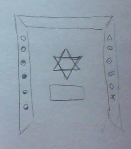 Elizeth nimmt die Kreide, zeichnet ein Symbol, das auch du als „Erz“ erkennst und zuckt im nächsten Moment voll Schmerz zurück. Das Symbol leuchtet rot auf und verschwindet, Elizeth flucht und knetet schüttelnd ihre Schreibhand. „La’ana buraz! Ich hätte es mir denken sollen, dass es nicht mehr das selbe Zeichen ist wie vor drei Jahren.“ Wütend starrt sie die Tür an. „Was nun?“ fragst du. Elizeth schnaubt: „Wir probieren uns durch! Bei der anderen Tür ist das Symbol jeden Mond einer der Erzdämonen – entsprechend dem jeweiligen Götternamen. Wenn es sich bei dieser ähnlich verhält, haben wir ja höchstens fünf weitere Symbole zu probieren…“ Und damit reicht sie dir die Kreide.